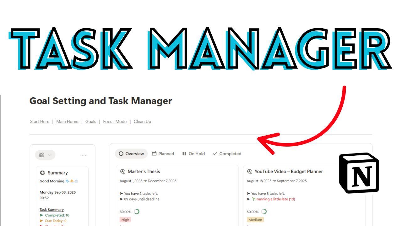 Tired of scattered to-do lists and missed deadlines? This Task Manager Template is designed to help you take control of your day-to-day tasks, stay on top of projects, and actually achieve your goals.