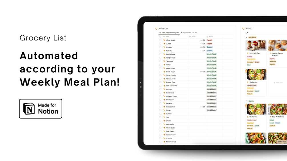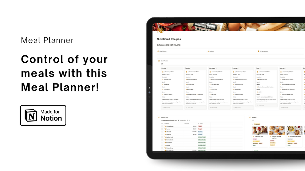 Take control of your meals with this Weekly Meal Planner Notion Template! Whether you're meal prepping, tracking your grocery budget, or organizing your favorite recipes, this all-in-one system makes it simple, efficient, and stress-free.